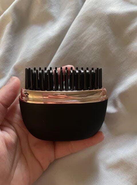 Smooths hair in just 1–2 passes, thanks to its heated inner plates designed to straighten, not just brush.